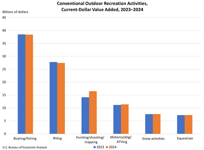 State economies continue to see major benefits, and according to the BEA data, the top outdoor recreation economies ranged from California at $87.9 billion in value added to Colorado at $18.1 billion. States including Massachusetts and North Dakota saw some of the fastest growth rates in 2024.